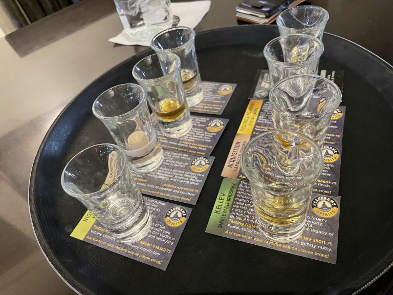 To kick off the experience, we ordered a tasting and were offered tasting cards that included tasting notes, a brief history of the spirit’s namesake (most of which give a nod to Butte’s incredible mining history) and recipes for the spirit!